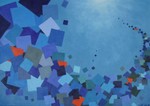 2018abstract schilderij van bankjes, opgezet in acryl verf