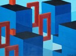 2018abstract schilderij van bankjes, opgezet in acryl verf